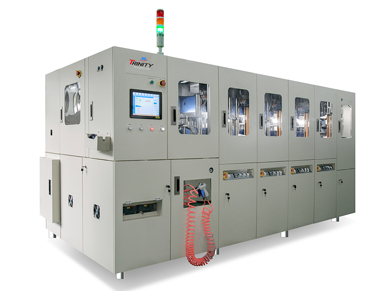 该系统包括上料单元、引线框架整列单元、引线框架牵引单元、引线框架预热单元、树脂供给单元、上料机械手、下料机械手、压机单元、下料冲切单元和成品输出收集单元.