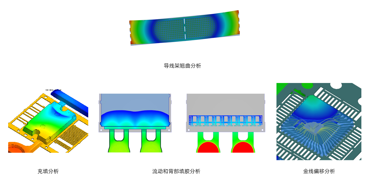 2,通过动态的方式呈现充填、硬化、熟化后导线架翘曲、金线偏移等情况;